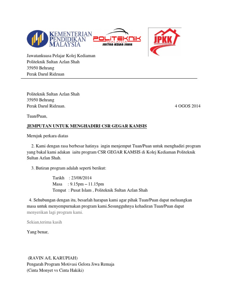 Contoh Surat Jemputan Program Hem Pdf